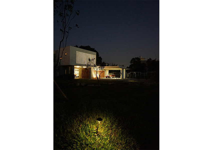 新建的部分,我們嘗試以三個或虛或實的白色量體,配合不同高度的牆體圍繞舊建物,環抱出一個向南內聚的中庭,試圖引入並透過雨水回收景觀池降低夏季南風的溫度,也利用厚牆抵擋當地冬季冷冽的北風。西北角的白色空心磚量體除了作客房可獨立使用外,也藉此減低主建物的西曬問題,並創造出戲劇性的光影;東南角則將室內空間外推至原有的廊道,以白色的新建量體改造原有的背立面並解決主臥室衛浴動線問題。